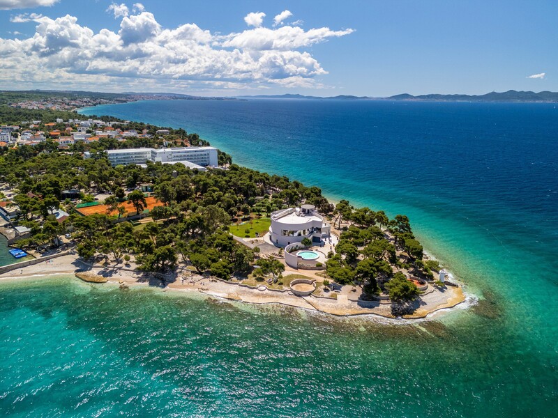 Hotel Pinija is located in Petrčane, a small town just 12 km from the center of Zadar. Its unique position on a natural peninsula makes it a perfect choice for relaxation and recreation. Nestled in a pine forest and surrounded by crystal-clear sea, it offers a peaceful oasis away from the hustle and bustle of everyday life. The hotel’s idyllic setting is the perfect place to unwind, while the rays of the world’s most beautiful sunset guarantee an experience to remember. Along with this paradise-like ambiance, enjoy our hospitality, indulge in culinary delights, relax with a romantic wellness offer, or organize your wedding or business event.